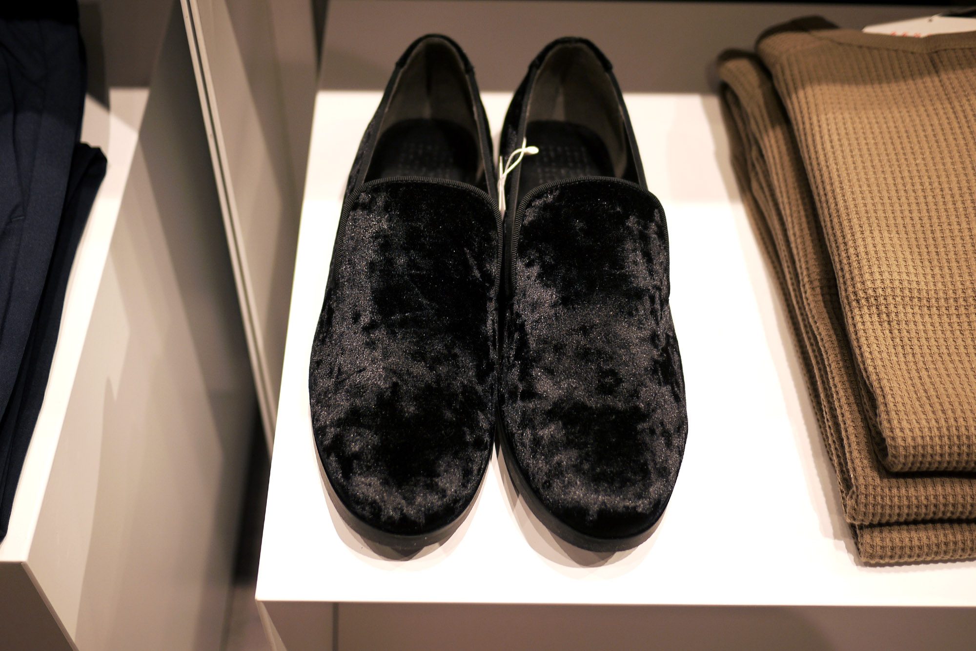 男裝部分今年秋冬,在上身部分開始著重襯衫的選擇,如帶有多色系,面料上帶有毛呢的單品,適合於各式風格的搭配;「毛料感」也是服飾參考的重點,像是圖中以絨布建構的 Slip On 鞋型,為本回 SENSE OF PLACE 推薦於秋冬著用的單品。