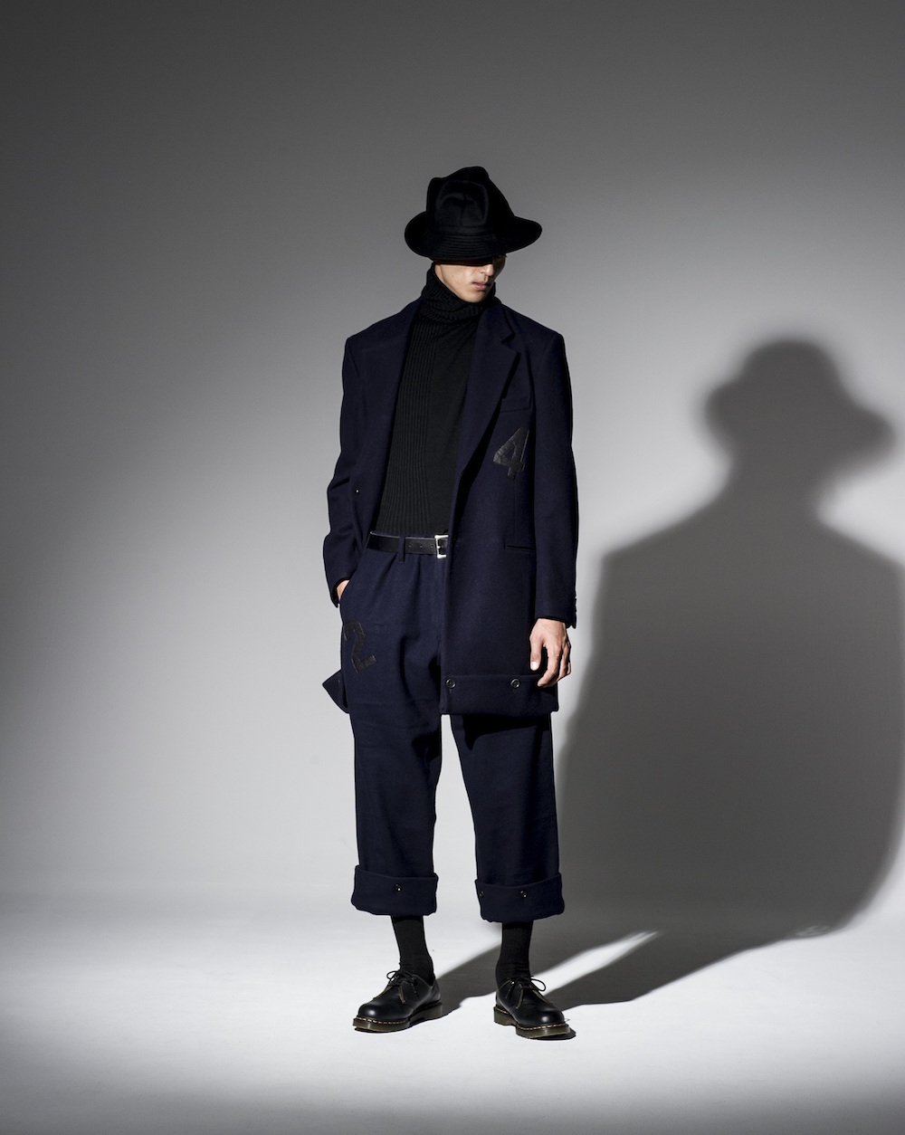 1987 年山本耀司 Yohji Yamamoto 站在哪裡?西服解構是當時所專研的區塊,寬鬆的剪裁是未曾見過的,還找來音樂鬼才高橋幸宏(Yukihiro Takahashi)擔崗當年度的秀場音樂製作,並且秋冬系列找來英國時尚攝影師 Nick Knight 拍攝形象照。山本耀司每季都會挑選幾件多年前的作品,以 Yohji Yamamoto REPLICA 支線來發表,這次帶來 1987 秋冬的作品,感受上窄下寬的視覺,加入數字元素來象徵時間的推移,過往 Yohji Yamamoto REPLICA 也曾帶來 1991、1985 秋冬和 1986 春夏等系列,即便相隔 30 餘年,實穿性與大膽的輪廓依舊。