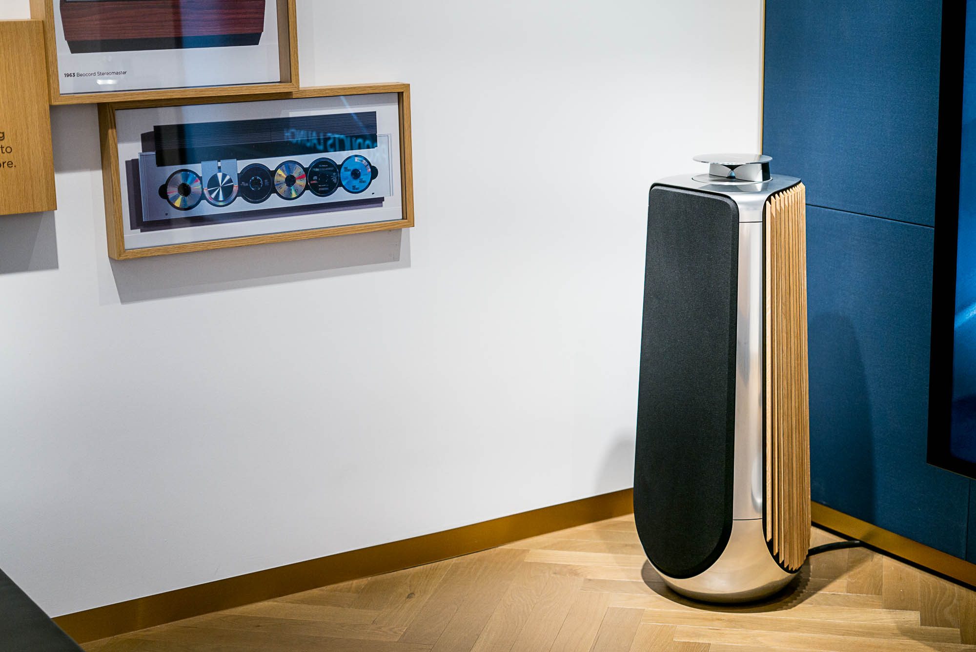 Bang&Olufsen 的 BeoLab 50 的聲波透鏡技術就在頂端的機構裡頭,會隨著聆聽環境不同開闔,藉以改變聲音擴散方式;兩側木條飾版下藏著的是低音單元,除了讓原木質感融入居家環境,也是讓整組音響視覺上更具立體感的設計。