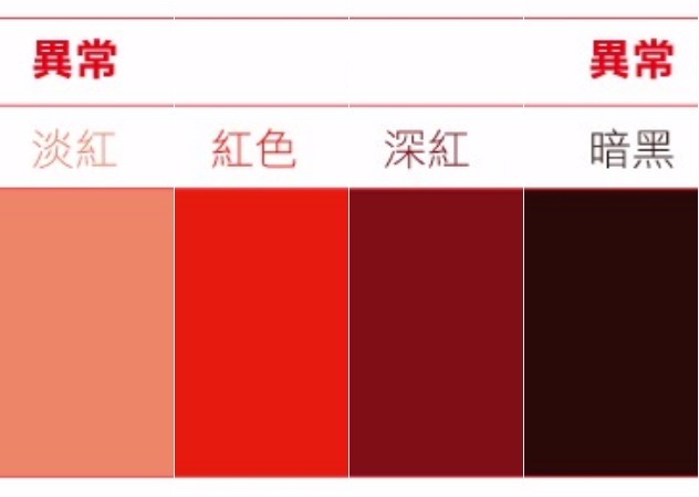 如果是紅色或是鮮紅色,便代表妳的子宮很健康,經血排出的很順利。但這點僅止於初期,如果到最後幾天還是呈現鮮紅色,就有點怪怪的、是異常情況。
