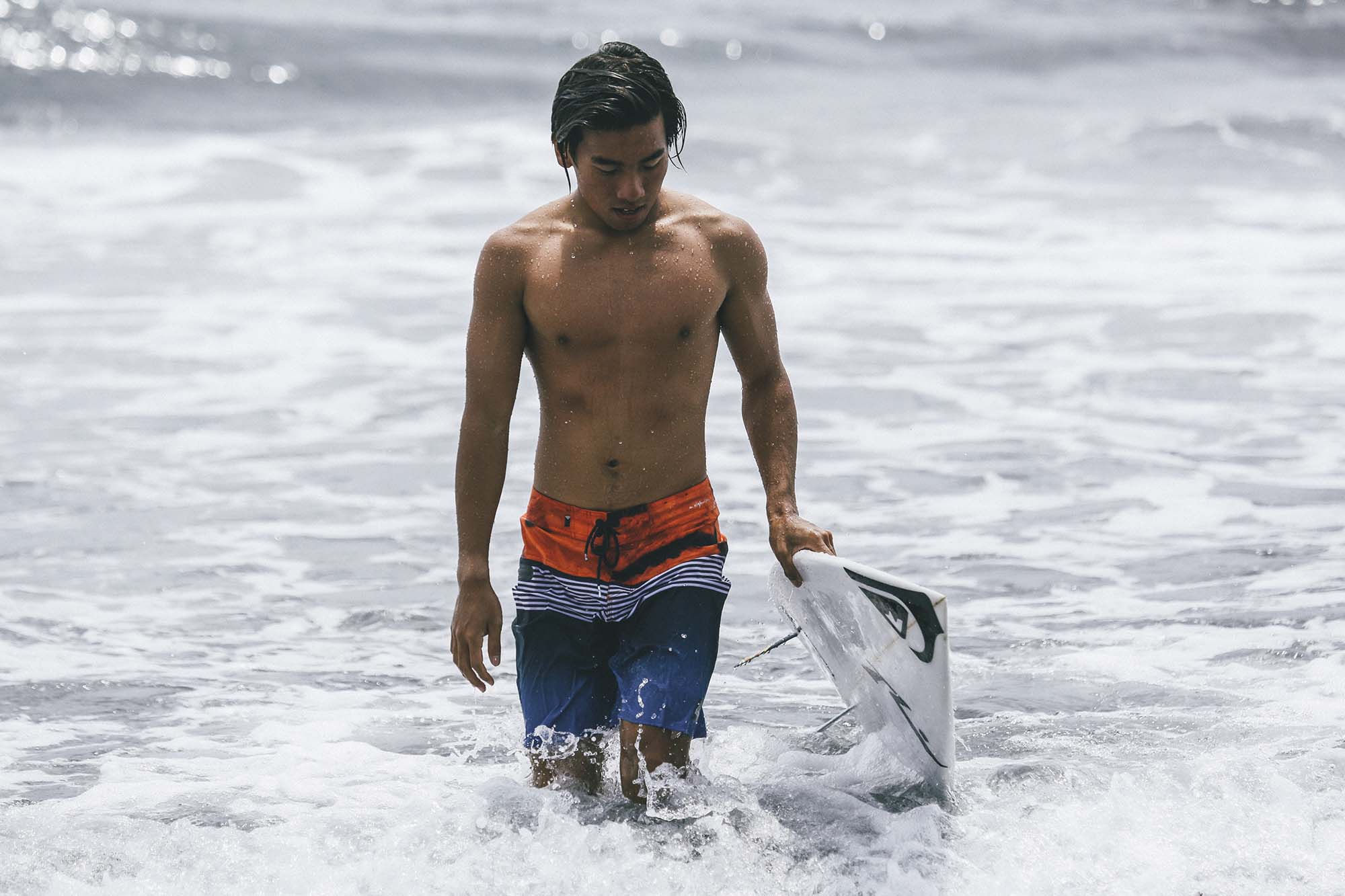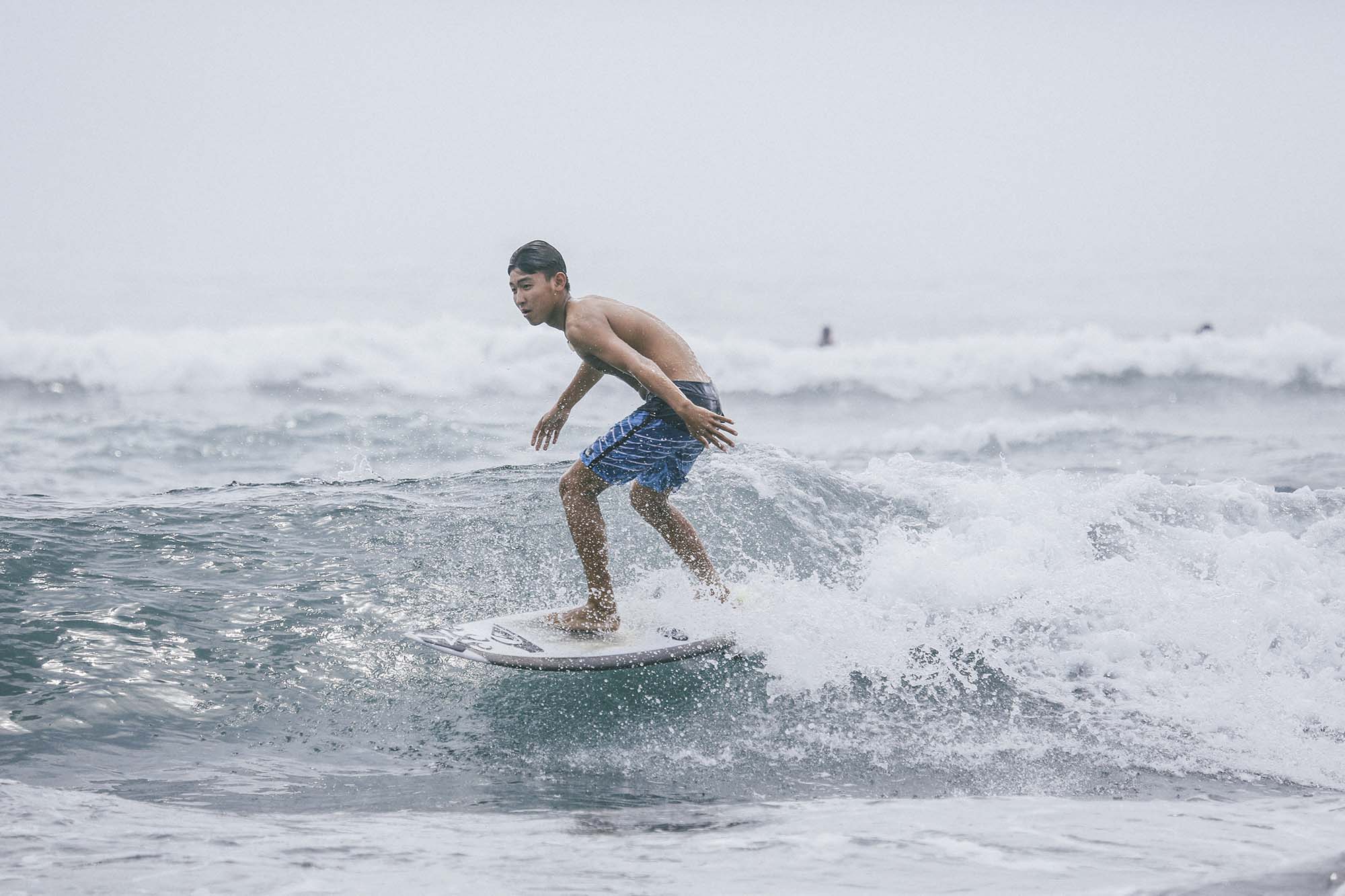 Justin:因為家裡後面就是海邊,小時候沒有什麼興趣,就會跑去海邊泡泡水,一開始是自己試著玩玩衝浪板,後來衝浪店的教練看到我在玩,覺得我有天份,便開始跟我分享一點技巧。
