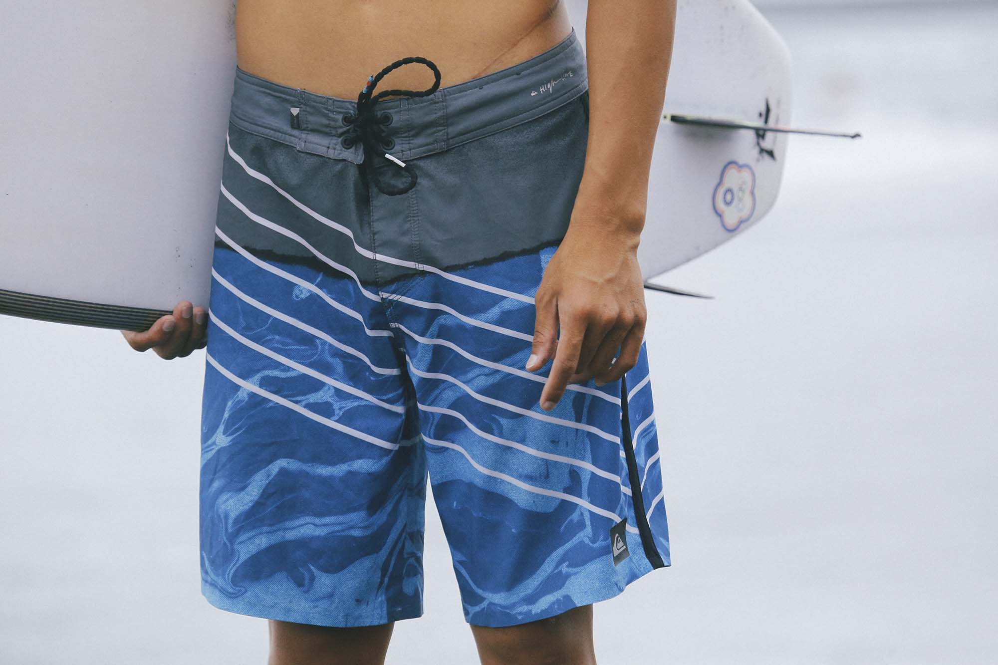 QUIKSILVER Highline 系列衝浪褲皆採用頂級鑽石織紋(Diamond Deluxe fabric)打造,本次 Jin 與 Justin 穿著的皆為 19 吋長度款式,其頂級鑽石織紋布料以及柔軟潛水布料褲襠內裡,能有效減少褲款與肌膚的摩擦,提供衝浪者極為舒適的穿著感受,此材質更具備全方向四維彈性,讓浪人能夠全方面延展身體不受限,同時也搭載了 DRY FLIGHT 快乾科技斥水塗料,使褲款不易沾濕,維持輕身乾爽,褲頭凹凸防滑綁繩不易鬆脫,後方口袋貼心加上鑰匙環,輕鬆保護重要物品。