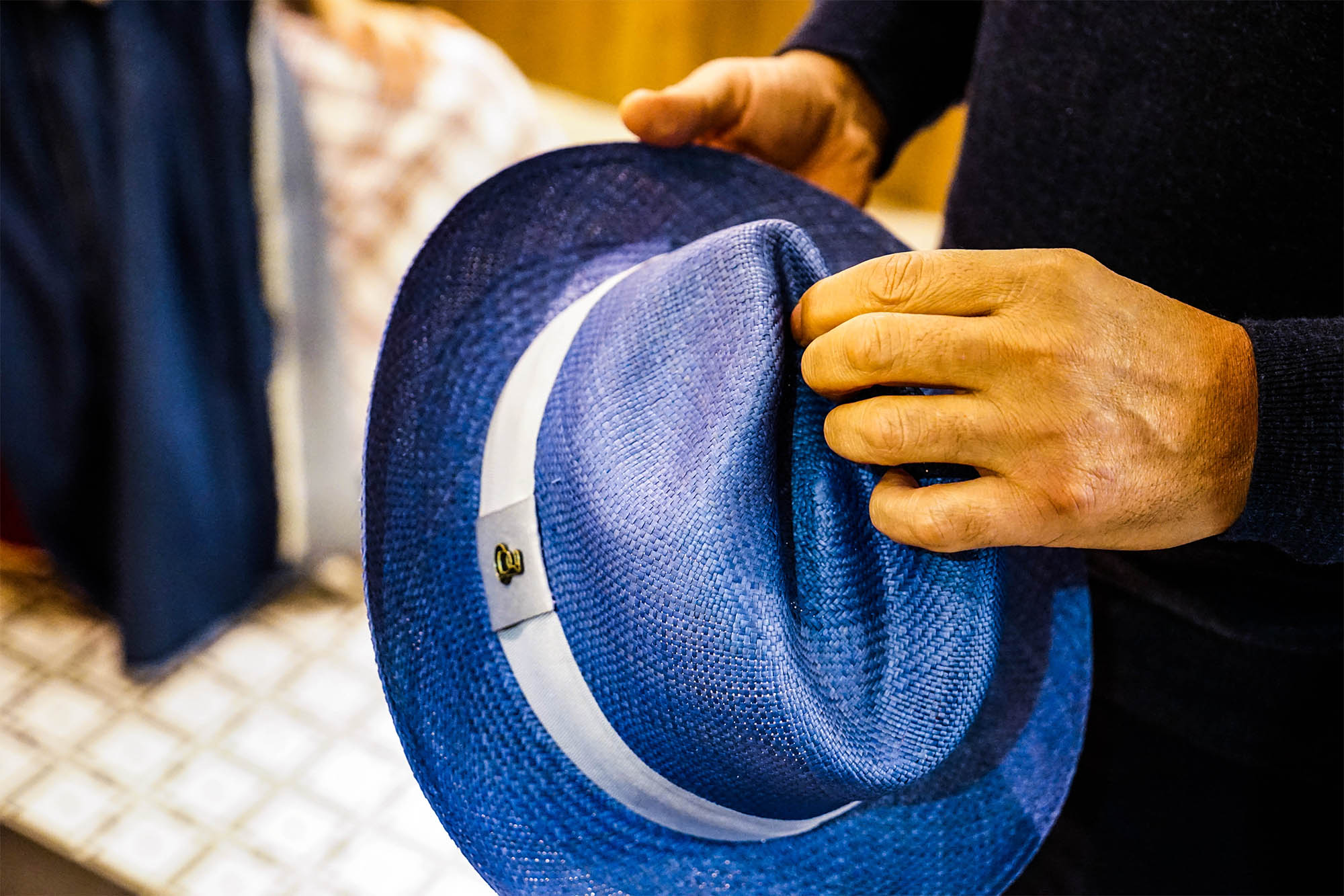 雖然統稱為巴拿馬草帽,但其實有分等級的,一般版的從採收新鮮巴拿馬草到完成,走的是一代傳一代的家庭代工方式,完成約需一個月。Alejandro 這次來台北戴的則是目前全厄瓜多只有一位職人 Senovio Espinal 會做,整頂帽子有如絲綢的最高等級 Montecristi Superfino Pile,他做的帽子拍賣價曾高達新台幣 19 萬。
