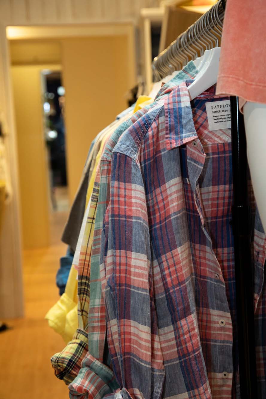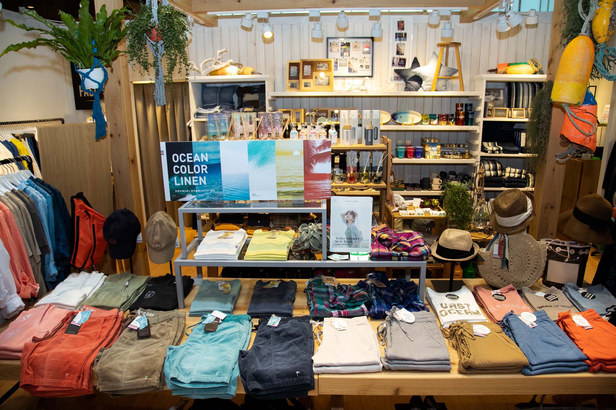 服飾系列主要分為兩種風格,一種是休閒度假風格,另一種則是具都會感的時尚系列。商品材質皆以棉質類製品呈現出 BAYFLOW 品牌特色,同時更推出滿足 30 世代想要的諸多高品質丹寧商品。另外生活雜貨也是本次快閃店之一大特色,善用單寧布企劃出許多特色家飾,以及健康色系配上品牌形象的圖騰、海灘風格居家小物,展現出有別其他品牌的美國西海岸特色雜貨。