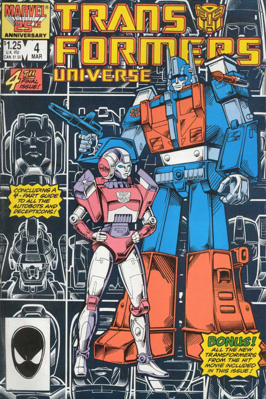 ⟪變形金剛⟫漫畫在1984年首度推出,最開始的四集描述狂派與博派為了爭奪資源而戰,結果墜落地球,在地球上繼續戰鬥。1986年的Transformers Universe則對角色性格、弱點有著詳盡描述。