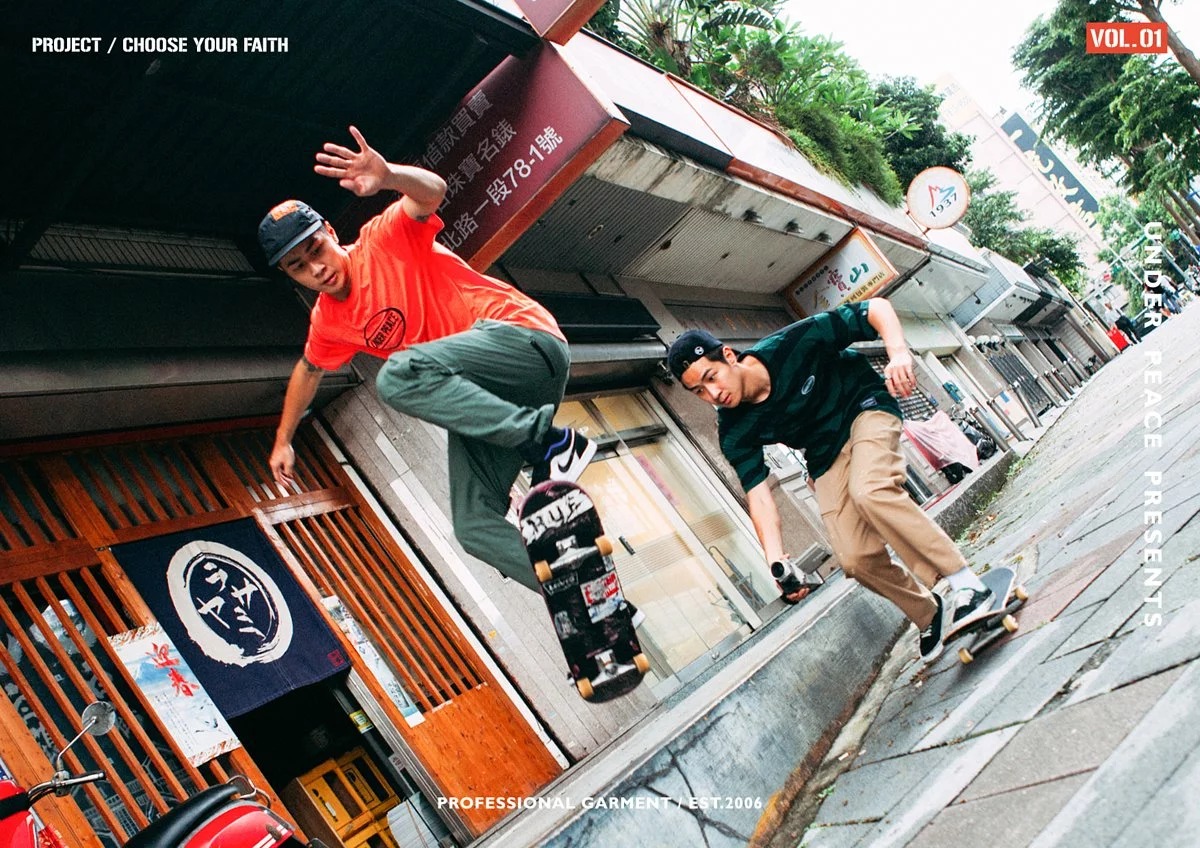 以「Choose Your Faith」作為品牌主軸意意念的潮流品牌 UNDER PEACE,自 2006 年成立至今,持續進化,陸續與 Hello Kitty、海綿寶寶等品牌展開聯名合作,去年更與美國真空保溫瓶 STANLELY 及伊藤潤二展開合作,讓街頭品牌有更多不一樣的可能性。而街頭文化與滑板息息相關,甚至是代表街頭最重要的文化之一,這回 UNDER PEACE 找來兩位熱愛滑板運動的雙胞胎兄弟: 馬克及威利一同演繹春夏 LIFE STYLE 系列,兩兄弟說「滑板是信仰,堅信著只要不斷嘗試就會成功。」藉以呼應 UNDER PEACE 的品牌標語及信念 “Choose Your Faith” ,試圖用服裝展現他們的信念,傳遞風格。