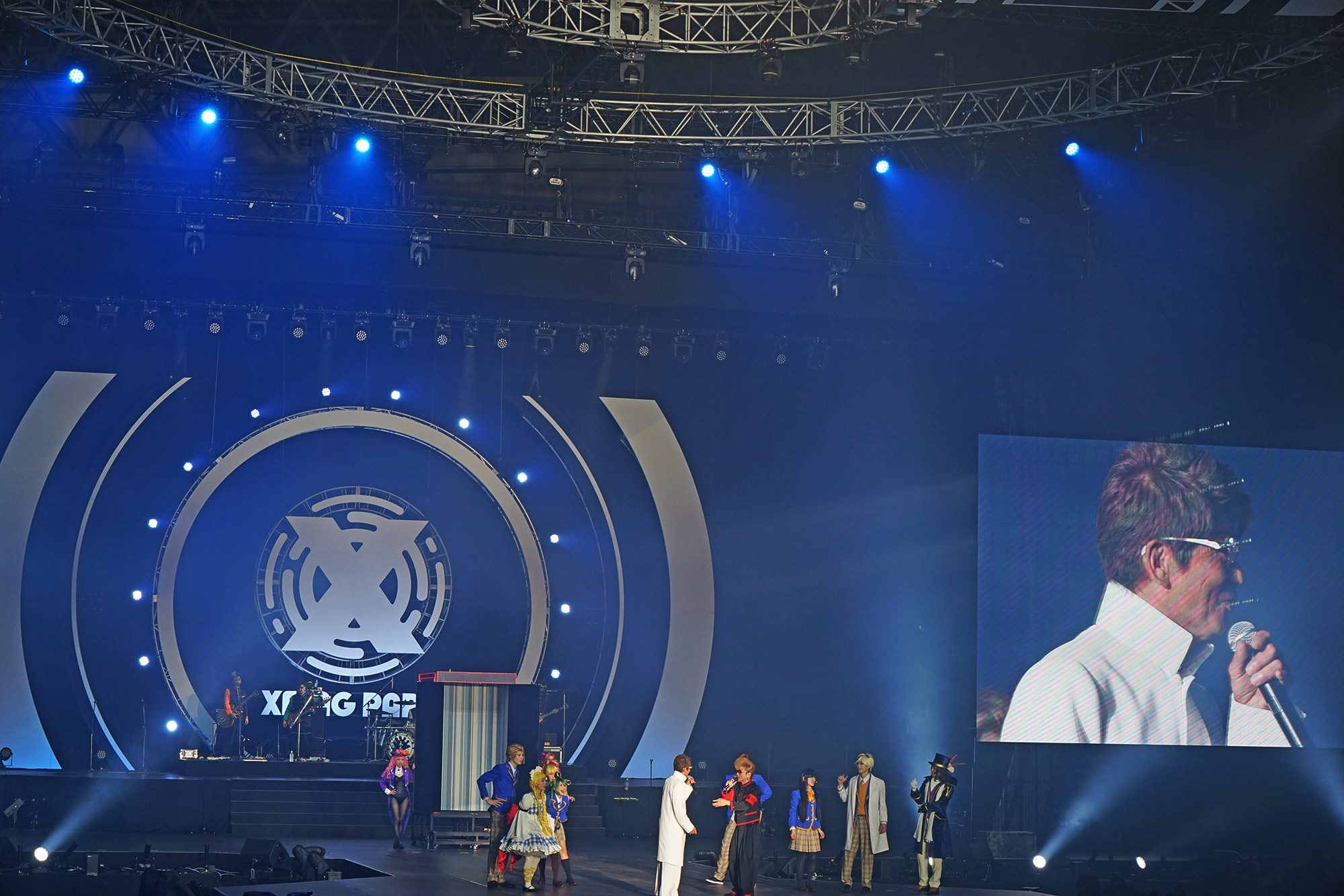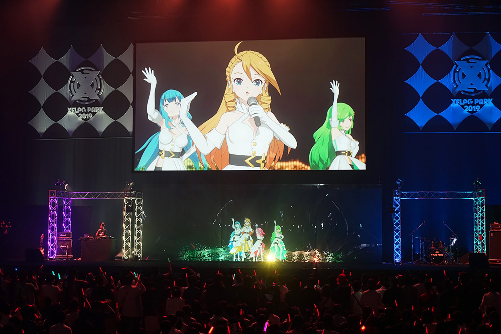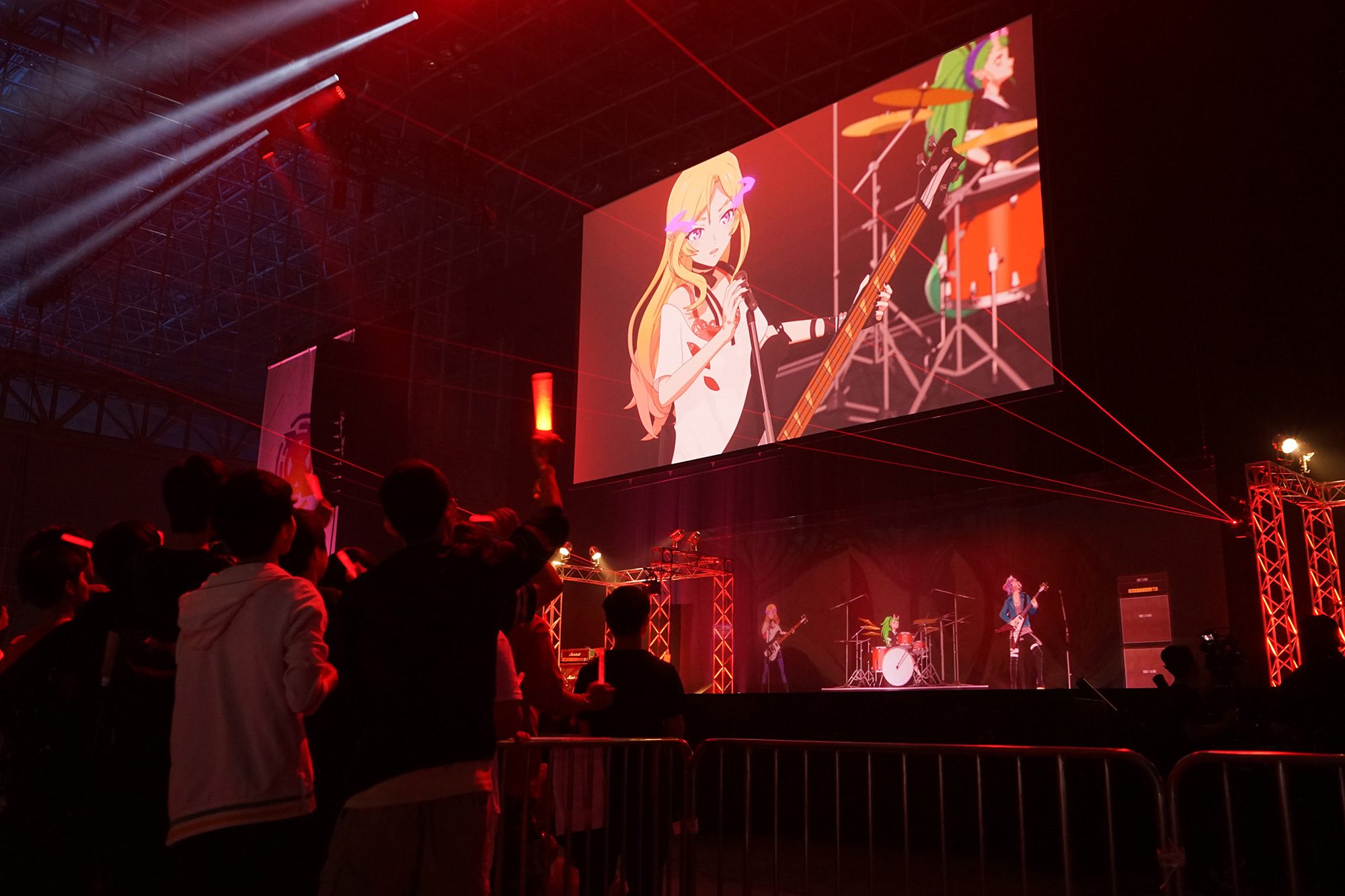 ⟪怪物彈珠⟫ 裡的角色組成樂團,其中被形容為騷亂的惡魔,重金屬樂團龐克・煉獄讓全場氣憤沸騰。虛擬偶像的下台方式也很妙,光影之間消失不見。