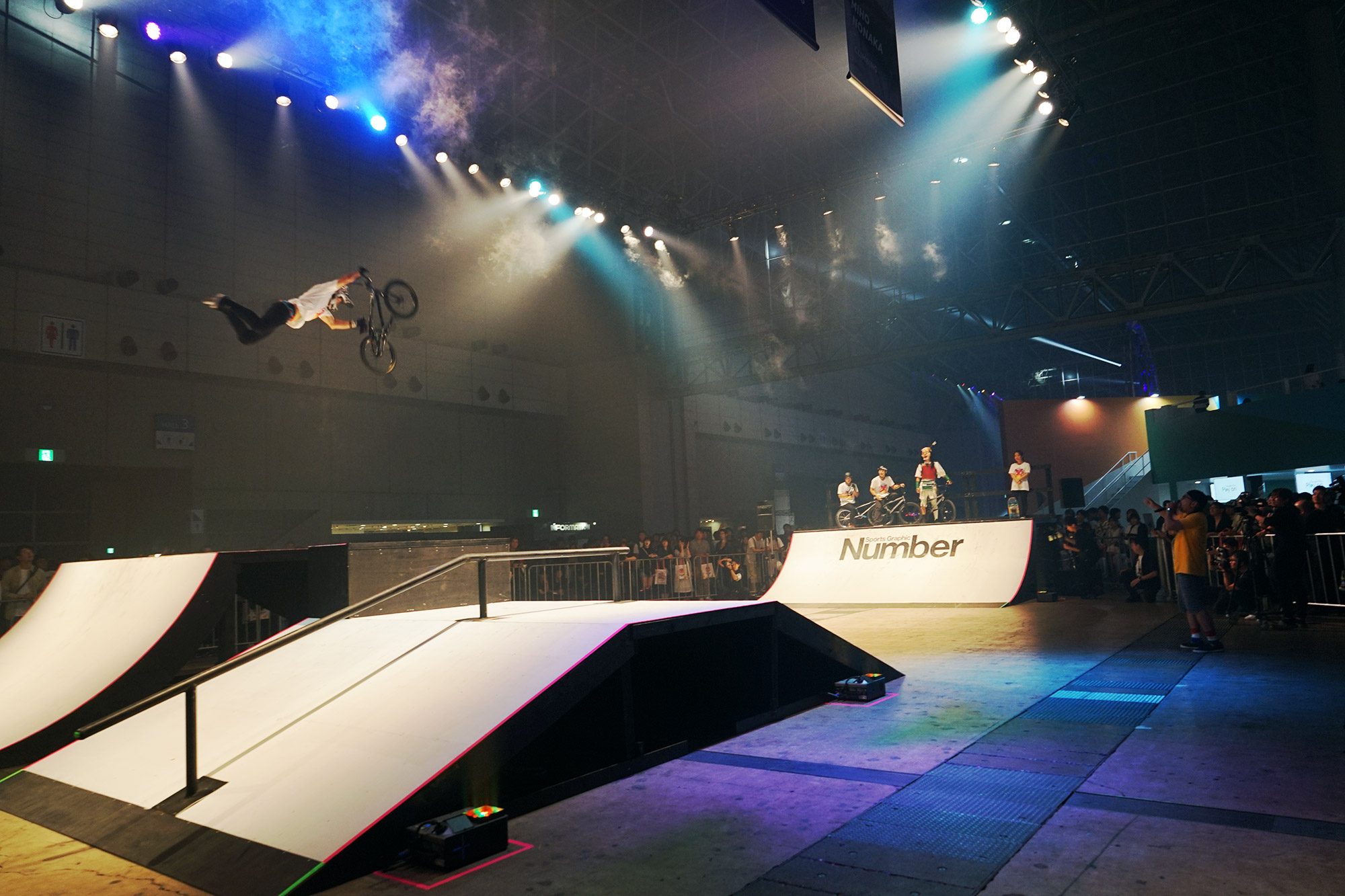 如此的興奮情緒在 Sports Arena 也能感受得到,對,XFLAG參與了同樣大家能一起 high 的運動賽事,例如日本籃球 B. League、攀岩、X-Game 等等。「 《怪物彈珠》是從溝通開始的遊戲,現在要藉由溝通讓更多人能夠喜歡、享受運動,」木村社長說。隨著 Sports Arena 場邊觀眾的鼓掌嘶吼,滑板、BMX 選手,好啦,還有傲拉龍,從 U 型板上一躍而下,在空中翻轉耍技,讓現場氣氛瞬間陷入沸騰、尖叫不斷,我想這就是木村社長在專訪裡一直強調的:「我們要做的事就是塑造並保護好所有人能一起 ワイワイ 的空間。」