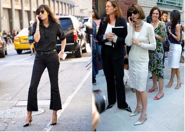 秋冬流行這種3公分小短跟,日常生活中搭配起來也很好走,不會像高跟鞋折磨雙腳,連兩位Vogue總編輯一美版Anna Wintour及法版Emmanuelle Alt都踩它上街,看來還是尖頭小短跟最時髦!