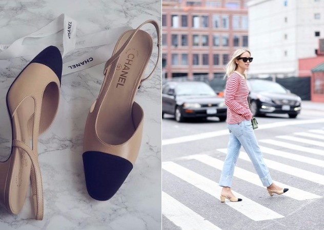 這雙是CHANEL的長青款,簡約的黑米配色,讓整雙鞋優雅十足。搭條紋上衣和牛仔褲就是經典的法式look,搭洋裝一樣氣質滿點,是雙永不過時的經典鞋款。圓頭粗跟款式,搭上本季復古風,不張揚卻很耐看(售價約NT$22,177)。