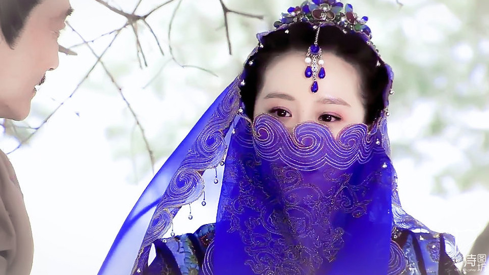 劉詩詩在《風中奇緣》的造型成了經典的西域美女,讓人印象最深刻的就是她穿著藍衣服、矇著面紗,真的是太美了,站在雪中的畫面讓人一秒心動。
