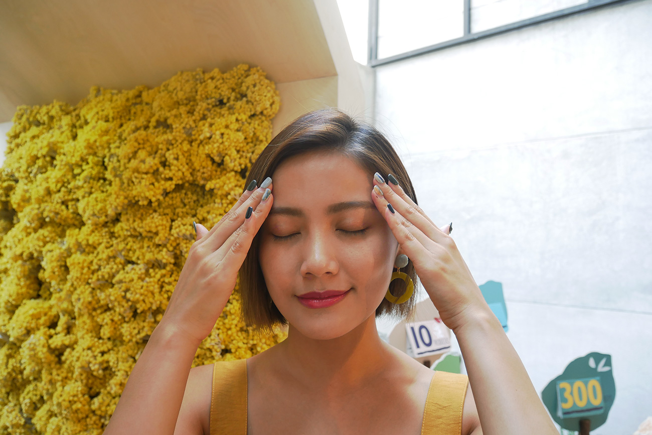 歐舒丹2001年開始推出蠟菊活膚系列,今年推出蠟菊精華系列升級版,包括蠟菊精華霜、眼霜、修護露、精華乳等。當然加上按摩手法,更能對抗幾乎老化。首先使用一個米力的精華霜,將雙手虎口放置於下巴處,向外輕壓拉提,能夠調整臉部輪廓,同時還能按摩到淋巴。再來用雙手在額頭由內向外拉提,最後將嘴巴嘟起幾秒鐘即可。