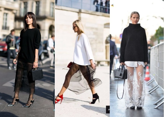 另一個衝突的穿法,可說是下半身失蹤的延伸版,就是選一件寬鬆的衛衣,搭一件透視的裙子就對了,創造出和皮衣效果一樣的衝突性,卻多了點可愛的中性感,穿起來也比較舒適自在。