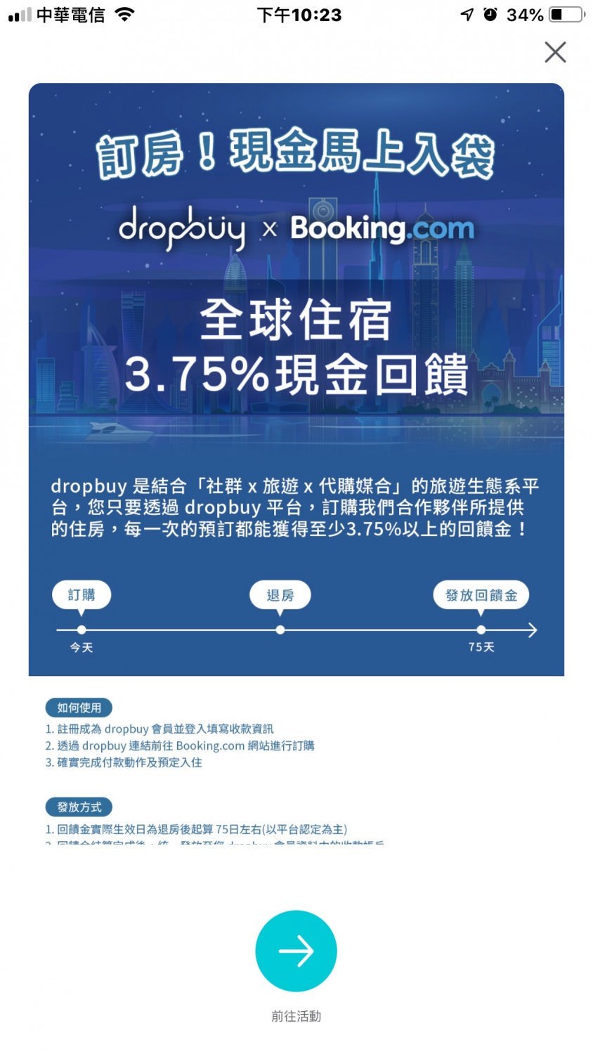 當然,順買 dropbuy 也有跟許多知名的訂房、訂機票、訂旅程的網站服務合作,透過順買 dropbuy 裏頭的連結點擊過去進行下訂,都可以賺取回饋金喔。