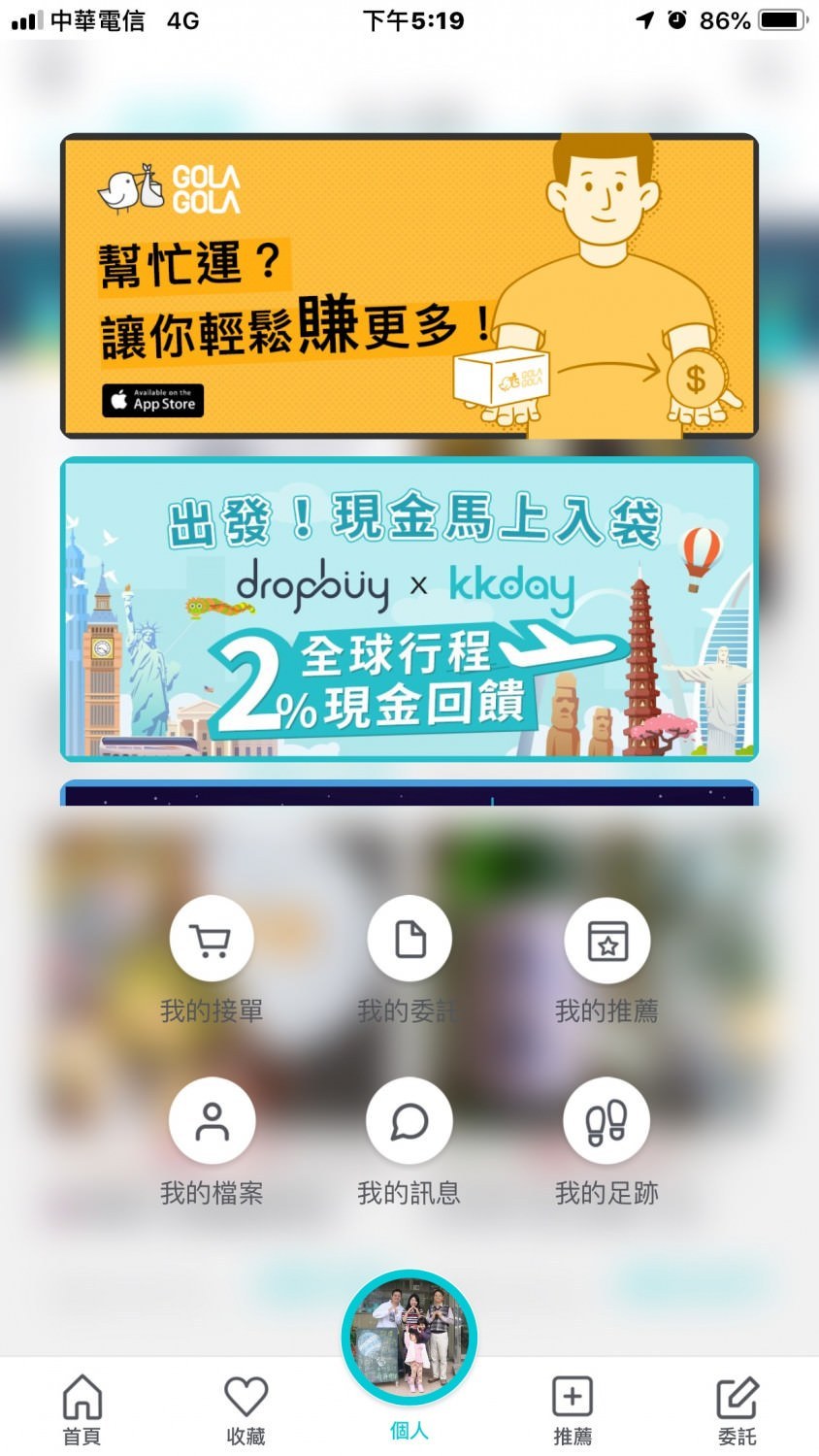 在 dropbuy 的首頁點擊你個人的頭像後,會進入到下面這個畫面,上面有很多配合的廠商(可以上下滑動的),首先我們先來介紹另一個賺錢服務,就是下面這個 GOLAGOLA…