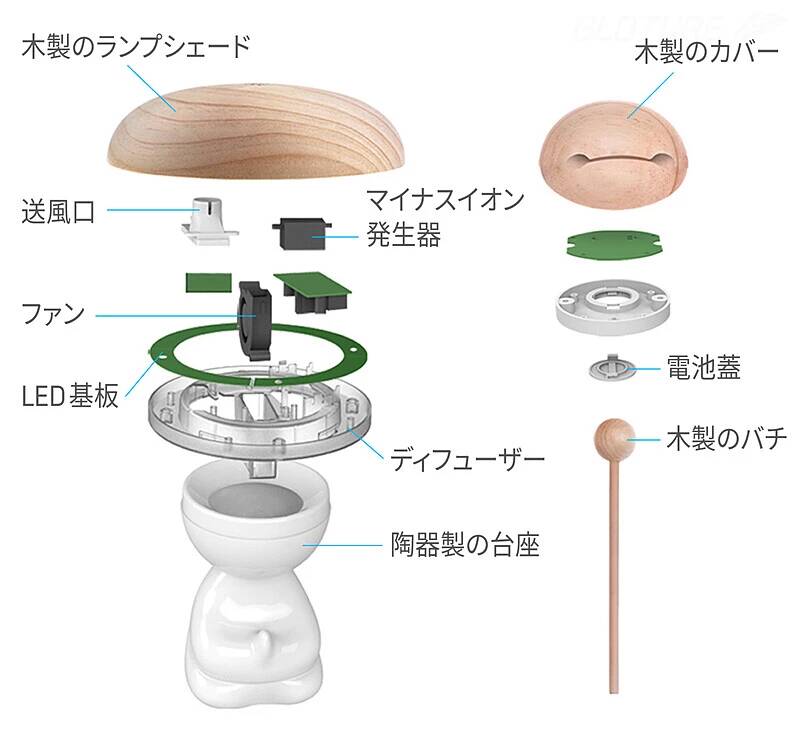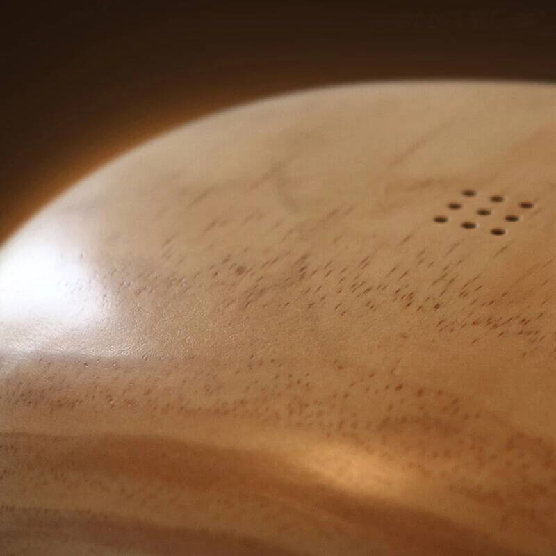 另外智慧燈內部還搭載了負離子產生裝置,能從木製燈罩上方的開口散發出。
