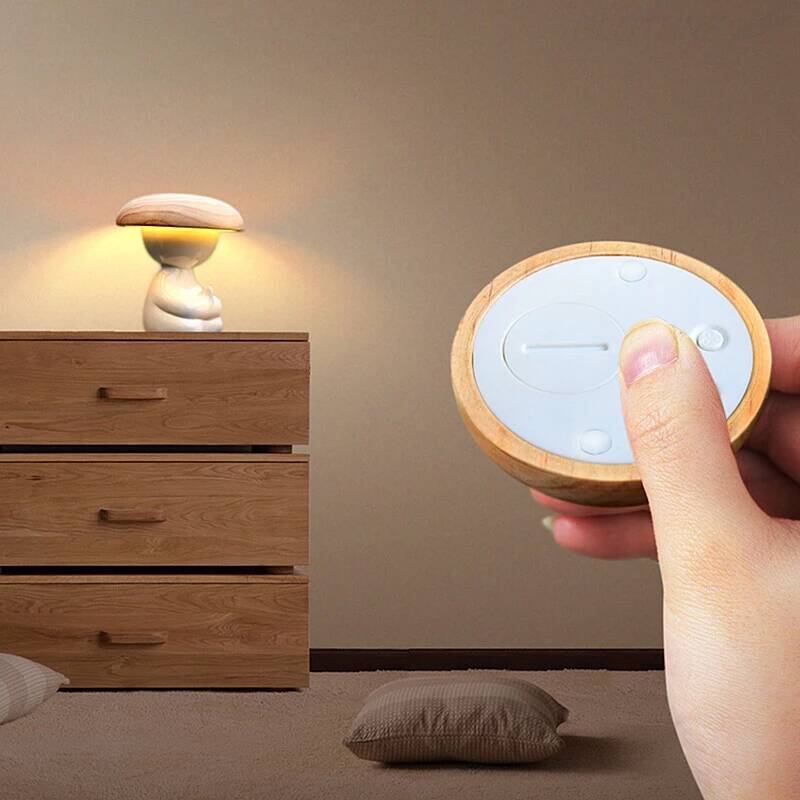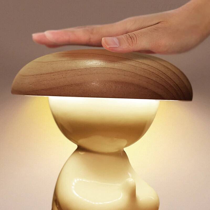 製作成小和尚造型的智慧燈,台座為陶器製,並搭配木製的燈罩,燈罩本身就具觸控感應功能,能透過觸碰燈罩來調節亮度模式,像是「閱讀模式」、「燭光模式」等。