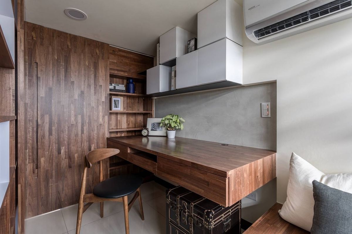 10坪小宅卻可輕鬆坐擁3房格局,設計師在與業主多次的討論下,將私領域空間細緻規劃。主臥室迎著窗外射入的充沛光源,使用玻璃拉門及木造櫃體將衣物妥善收納,同時返饋更多空間予環境。另一處臥室則備有多功能窗邊坐榻,可坐可臥,配置木造書桌及高櫃後,一方易閱讀的居室便悠悠形成。只要充分利用坪數創造空間,夢想中兼具機能與美感的品味住宅,便不再遙不可及。