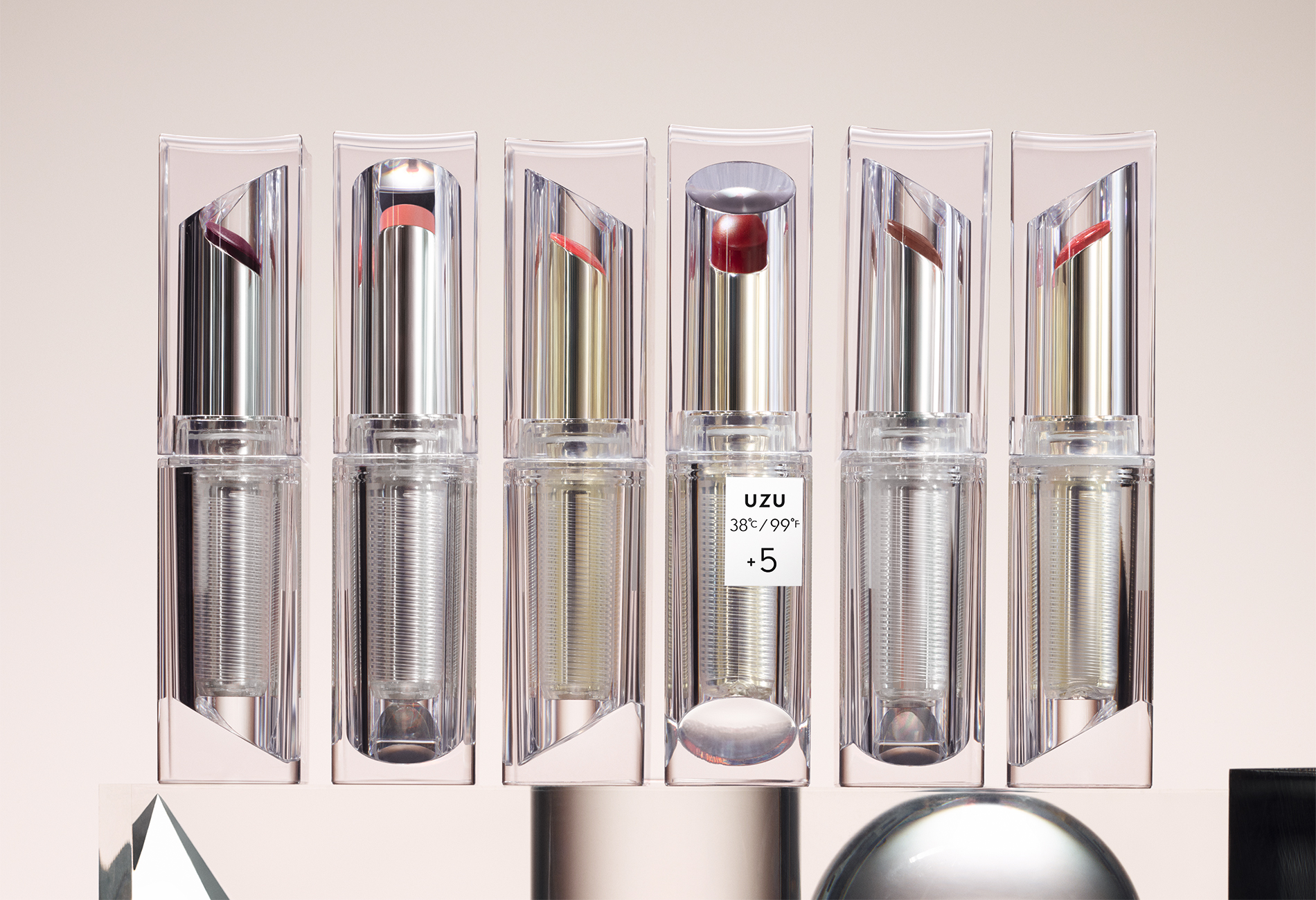 日本美妝公司 FLOWFUSHI 新創立的品牌 UZU,從品牌視覺到產品設計都大走讓人激發好奇心與關注度的方式。與品牌一同公開,首波產品為有著豐富色號的眼線液,一推出就成為日本美妝榜上的熱賣單品。而於 9 月份再推出的唇彩「UZU 38℃/99℉ Lipstick、LIP TREATMENT」與更成為了人氣討論話題。透過正負色號的唇彩系列,搭配透明冰塊造型呈現簡約的純粹美感,光從外包裝風格就讓人想即刻購入。