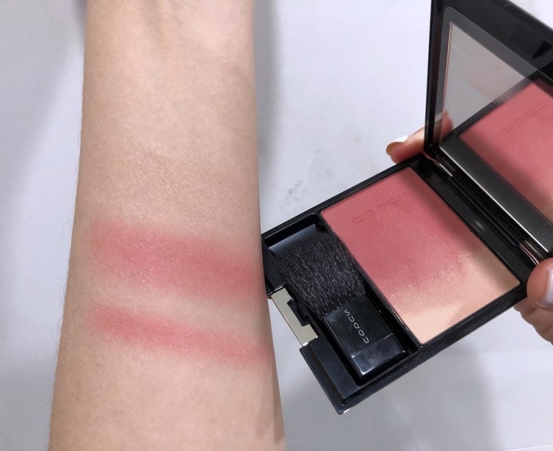 另外一盤腮紅摯愛就是SUQQU的漸層腮紅,質感不用說,貼膚度都超好,而且不顯毛孔,特別我的肌膚很乾,有些腮紅用起來會乾裂卡紋,這款完全不會,妝感很精緻,最近很愛色號10淡靄,是很粉嫩的蜜桃粉色,還帶一點氣質知性的感覺(自己說)。