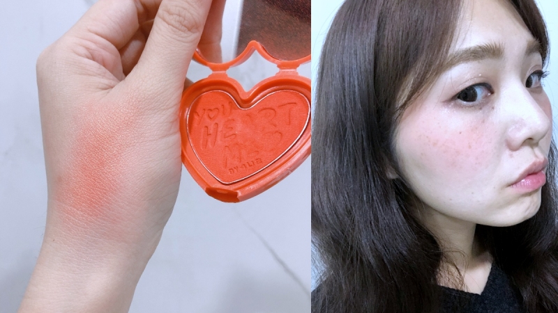 雖然我本身膚色白,但也很容易看起來蒼白沒有精神,所以很重視上腮紅提升氣色。如果你喜歡韓系風格的橘色妝容,大大推薦4U2愛心腮紅的色號S2 Living Coral,一開始看到原本很害怕色彩太重、太鮮豔,但實際上色是相當標準的活珊瑚橘,色彩相當柔美。