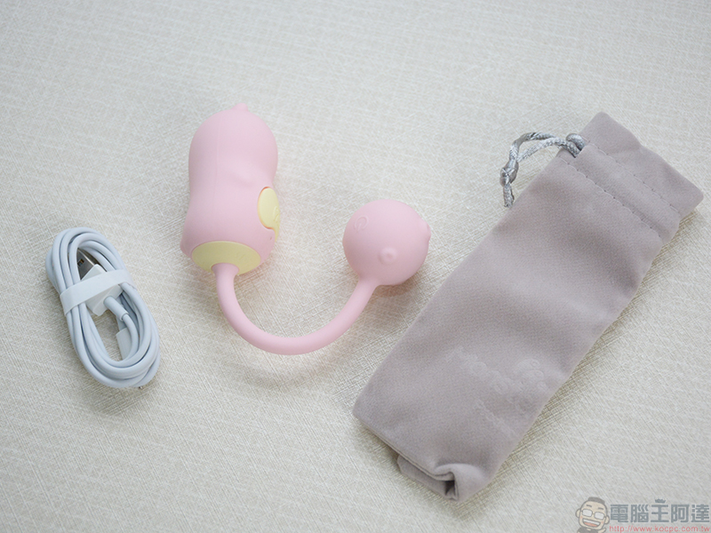 開箱後,內容物除了有小怪獸本人外,還有附上細緻的絨布收納袋和專用充電線。與 SISTALK 旗下其他產品一樣都是以粉嫩可愛的馬卡龍色系為主,且造型也相當俏皮,完全沒有傳統愉悅用品那般露骨又「寫實」,女孩兒就算自己購買或送給姊妹淘當禮物也非常容易下手。