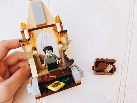 這款哈利波特聯名樂高的組合超級有趣,底座上方的轉盤是可活動設計,可以來看看自己會轉到被分配到哪一個學院,而一旁當然也少不了超經典的分類帽元素!