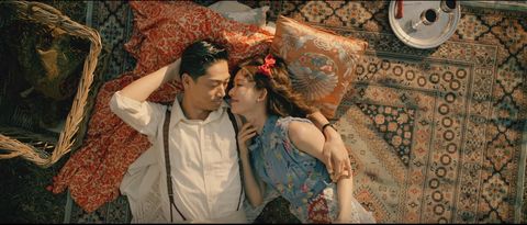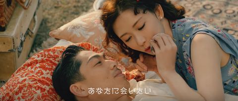 MV 中志玲姐姐和AKIRA上演了一段跨越時空的虐戀,被迫分開的一對前世戀人,最後是靠著香水瓶才在來生找到心愛的另一半。影片開頭就是志玲姐姐甜蜜蜜的靠在姐夫寬闊的胸膛上,兩人你儂我儂笑得開心放閃無極限,感覺根本就只是把他們私底下的幸福模樣搬到鏡頭前而已啊!