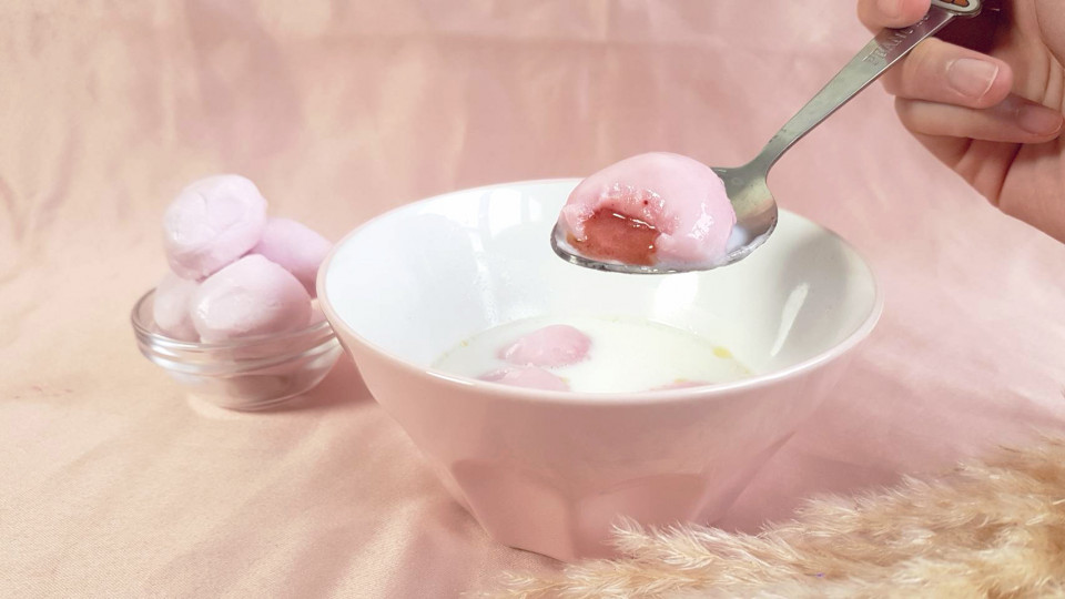 義美推出新口味湯圓!粉嫩「草莓煉乳湯圓」認真好好拍~
