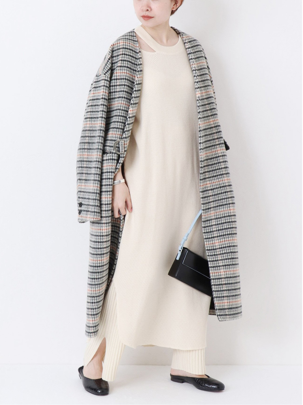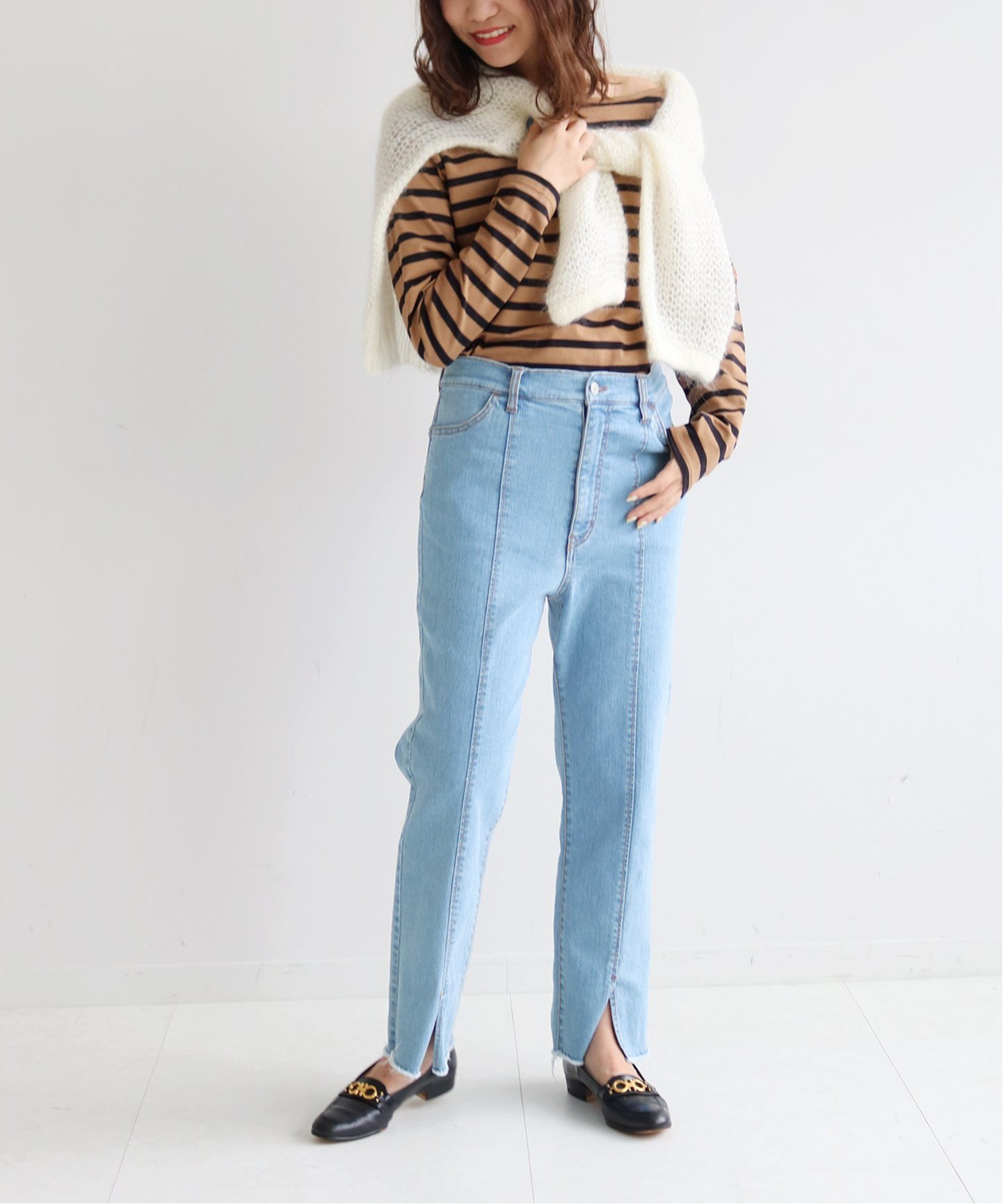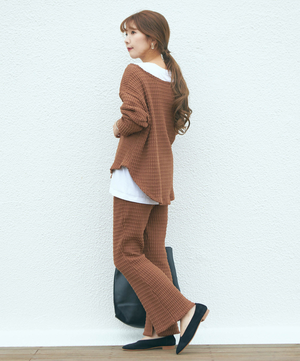 秋冬兩季最常見的就是針織或是毛料單品,但有些人對於這一類具膨脹效果的材質若是以長褲的形式穿搭就容易有顯胖的疑慮。想要穿搭出季節感又希望同時可以保有修身效果時,就選搭褲腳外側有著開衩設計的單品吧!不再會有褲管與鞋子打架的問題,走起來的輕盈線條也讓厚實的面料也能擁有俐落感受。