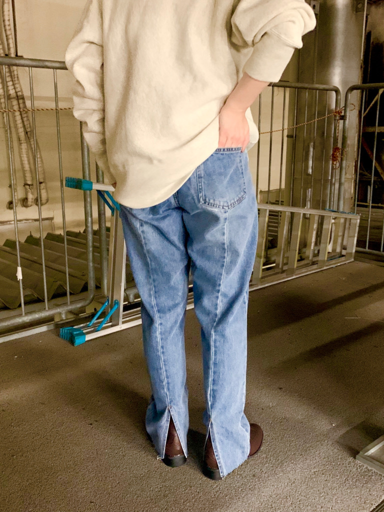 不喜高調的衣著感,只是想低調展露些許時髦印象的話,後方開衩的設計也不失一個選擇。同樣能降低厚實長褲的份量感讓褲管流線更加順暢,對於本季流行的長褲加靴子的穿搭而言是一個相當合適的剪裁。