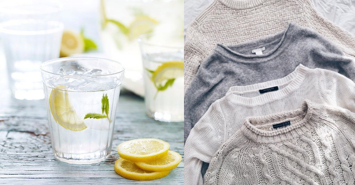 很多人一遇上衣物有異味,反射動作就是把手邊的芳香噴霧、香水往身上、衣物噴,但這樣不只不會除臭,還會讓沾附在毛衣上的味道更加五味雜陳!最好的天然除味劑,可以用酒精加一點檸檬皮,一點點檸檬香加上酒精的殺菌除味功效,噴上衣物不只能立即除臭,也不怕使衣物泛黃變色,但切記一定只能加檸檬皮而非檸檬汁,才不會去味不成使毛衣、針織衫受到二次傷害。
