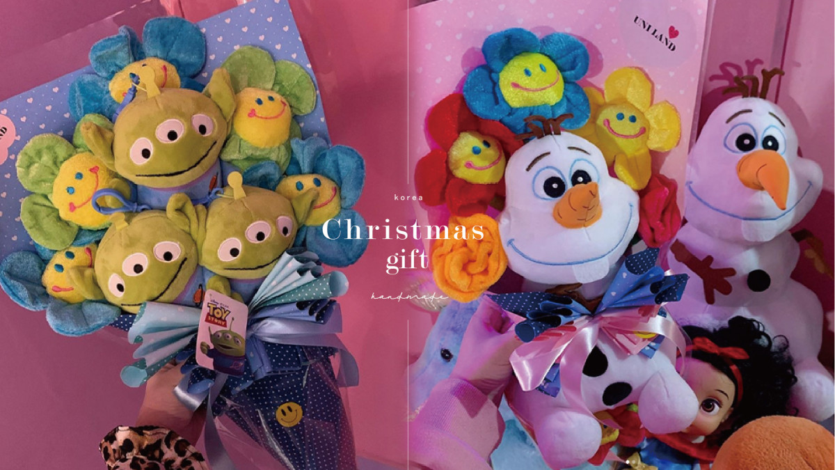 每到節日或是畢業季多數人會選擇送上鮮花以表祝福之意,乾燥花、永生花也成為不少人送花的種類選擇。而韓國繼巧克力花束、化妝品花束後,近期也開始流行「可愛玩偶花束」,將玩偶和小花結合,搭配上不同造型的卡通人物,能夠隨著收禮人的喜好做調整,IG@62_LAND分享了不少可愛玩偶花束,包括叉奇、三眼怪、小美人魚、雪寶等熱門人物,聖誕禮物就決定是它啦!