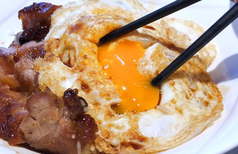 精選梅肉製作成肉質香嫩的叉燒,並燒至帶點「燶邊」,入口甘香鬆化。搭配流心的荷包雙蛋,米飯結合蛋液的半凝固金黃米飯加上叉燒的組合,絕對一吃愛上!