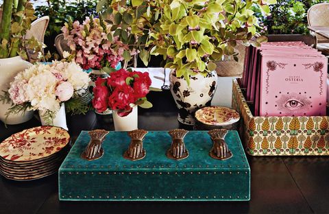 餐廳四周的牆面上有用金色字體書寫、羅倫佐德美第奇(Lorenzo de' Medici)所創作的15世紀嘉年華歌曲—狂歡頌歌(canto carnascialesco)。使用的家具不少是來自於創意總監Alessandro Michele 操刀的GucciDécor 系列。