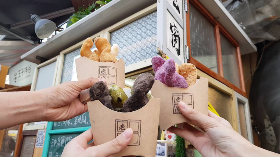 沒錯!這復古的白糖粿認真長得有點少女。而這家老窗,推出白糖粿的口味可是有高達6種。先不說到底有什麼口味,身在台北的小編還真的很少看見白糖粿這種美食。所以想說有些人可能會疑惑這到底是什麼?其實這白糖粿可是台南、高雄地區相當著名的小吃,而成分就是糯米、糖、水的組合啦~所以說這現炸的白糖粿,外層酥酥脆脆,裡頭卻是Q彈的麻糬感。再加上外頭裹上不同的口味,多層次的味道認真讓人難以忘懷!