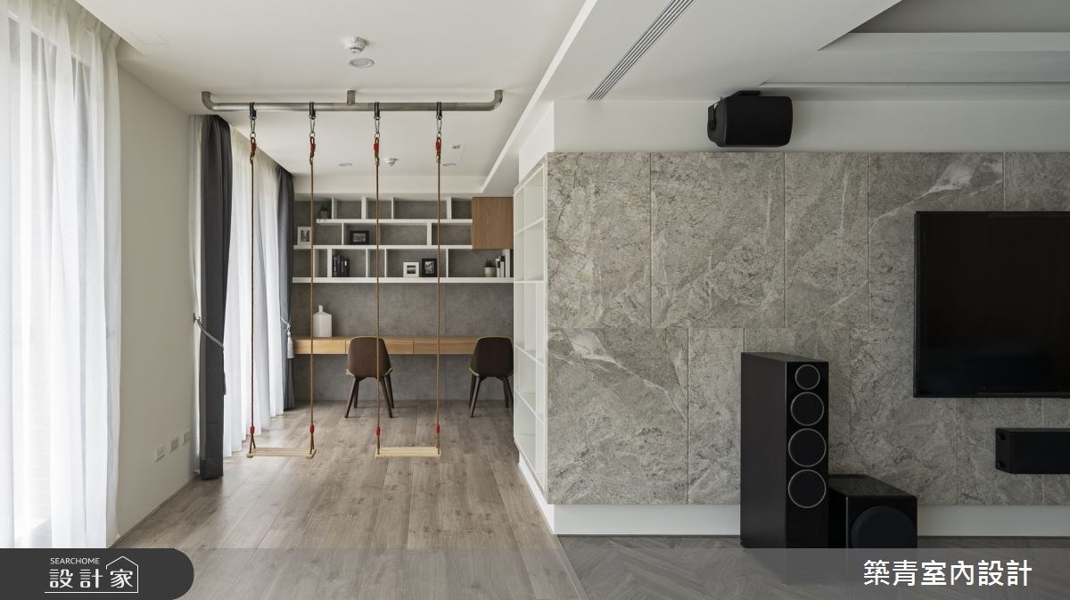 盪鞦韆式設計是這四種吊椅中最具童趣感的設計,視個人喜好變化座椅吊繩選擇,一片木層板或式類似鳥巢式的座椅規劃皆適合。另外,所需空間占比及選擇的材料彈性較大,因此許多屋主也會自行 diy 設計安裝,省預算外也非常適合坪數較小的住宅。