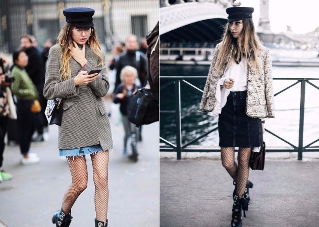 報童帽有點休閒的味道,配上陽剛的西裝外套,女孩無論穿或披,都有種小男孩的味道,下身用本季也很搶手的網襪做搭配,性感女力衝撞中性裝扮,整體看來就會協調,令人想要多看兩眼!