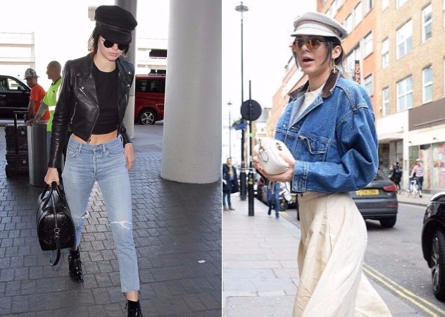 本季報童帽的出鏡率極高,金小妹Kendall Jenner皮衣搭配上單寧,報童帽一戴上去更添隨性雅痞感,換成白色報童帽也很有趣,搭配上白色寬褲呼應配色,看裡來俏皮有個性。