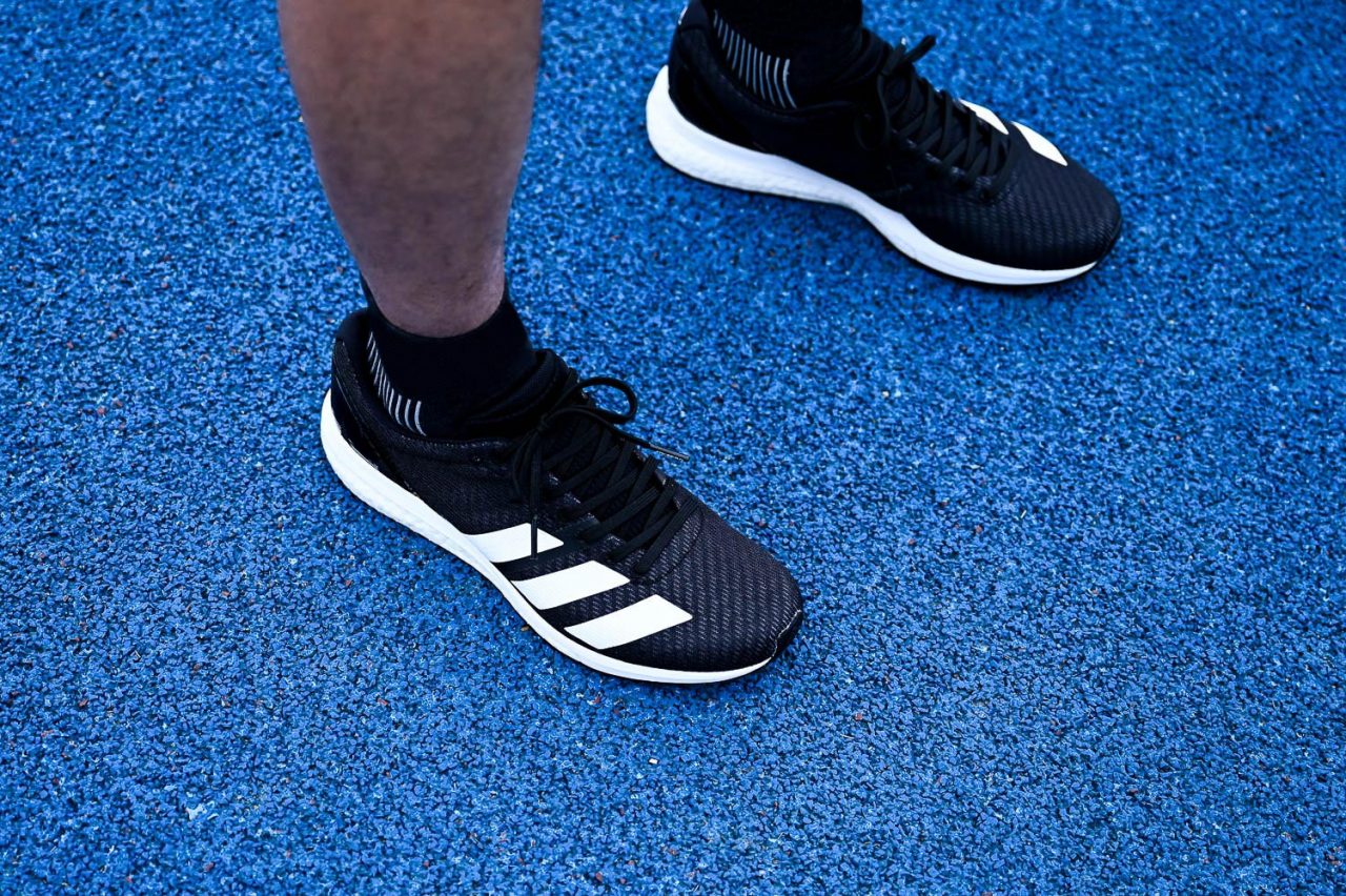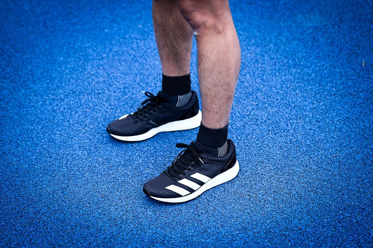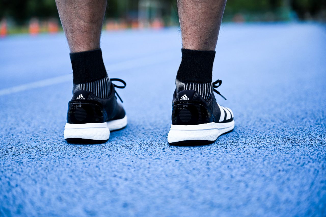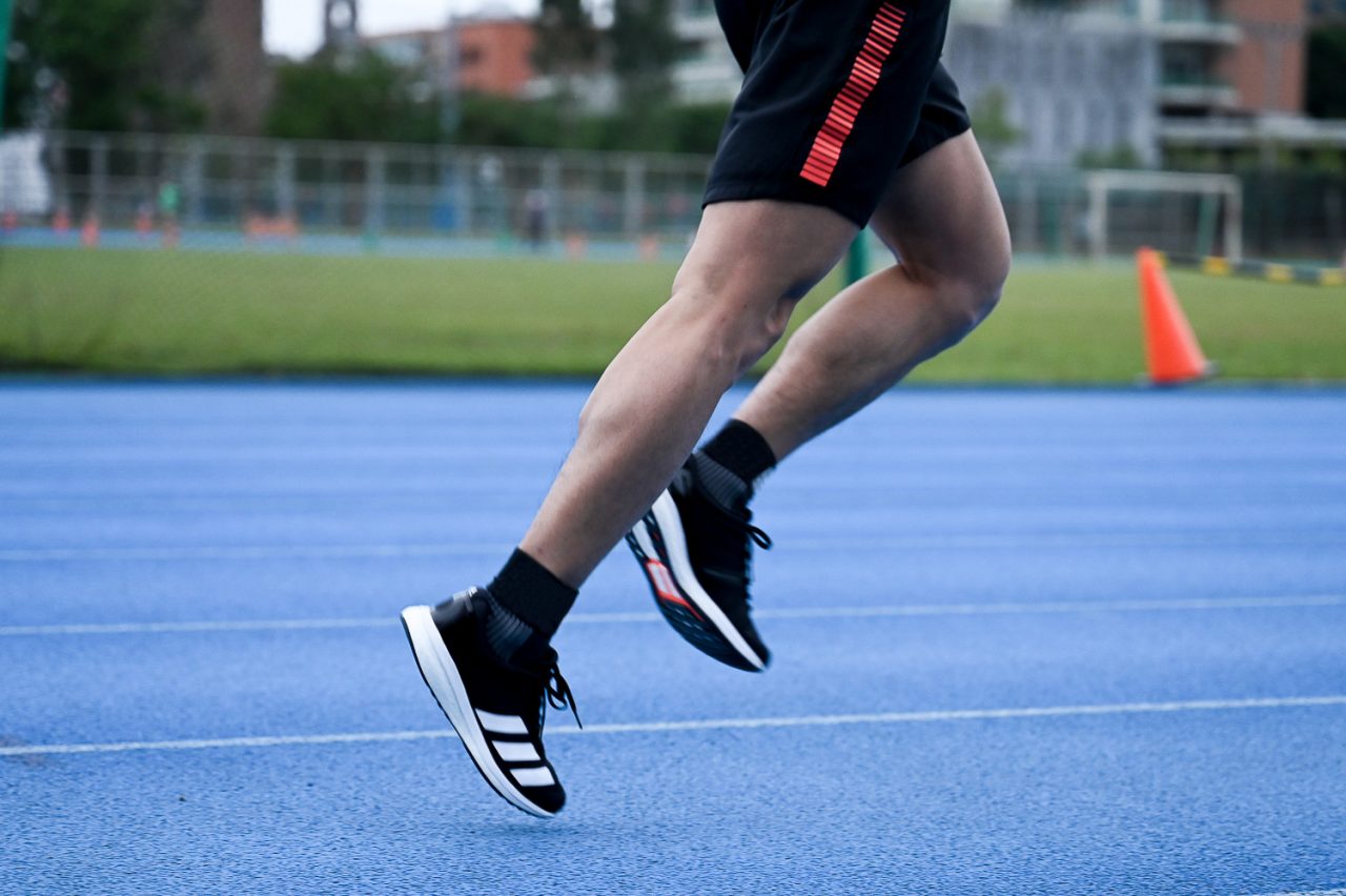 第一次試跑就在田徑場,想要試試 adizero Boston 8 有沒有新的感受,跑的時候蠻訝異,因為跟上一代頗不一樣,再踩下去的每一步,我都覺得有點柔軟,當然田徑場本身就有避震,柔軟歸柔軟,但並沒有感覺不穩,當下我想說是不是我的錯覺,於是速度就從六分速一直加到五分內,想要試出 adizero Boston 8 的潛力,加速時會感受到推蹬的力道比較和緩,於是我了解這雙鞋較不適合在田徑場跑,原因是會抵消你腳所出的力道,相對來說如果在一般柏油路面應該就很恰當。