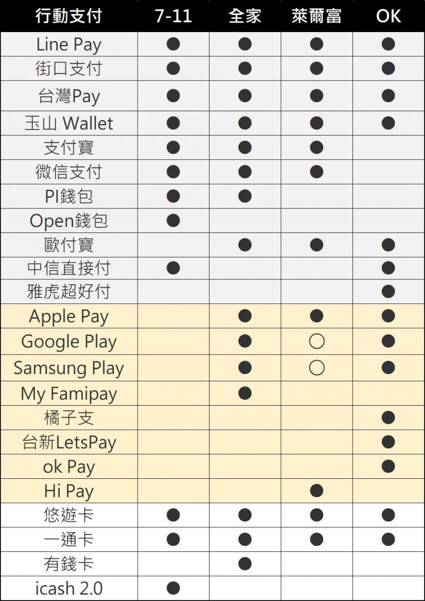 1.台灣四大超商信用卡刷卡與行動支付受理懶人包: