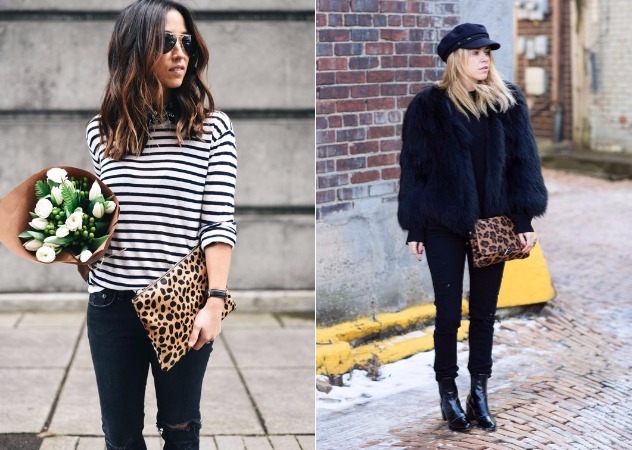 如果覺得穿在身上太顯眼的話,不妨就改拿個豹紋包吧!即使在穿著全黑的情況下,也可以讓妳的穿搭一秒有重點!豹紋鞋也有一樣的時尚功能。