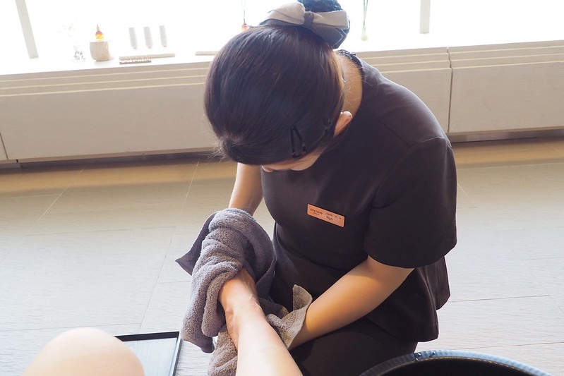 泡了一段時間之後芳療師就會過來幫你按摩雙腿