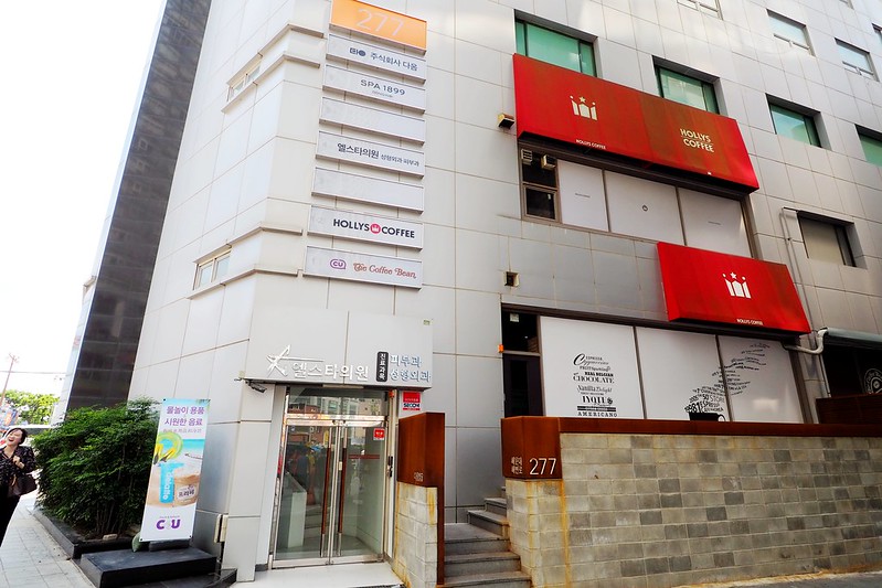 背面看起來很像一般的商辦,但正面就有Holly Coffeec和Coffee Bean等連鎖咖啡廳