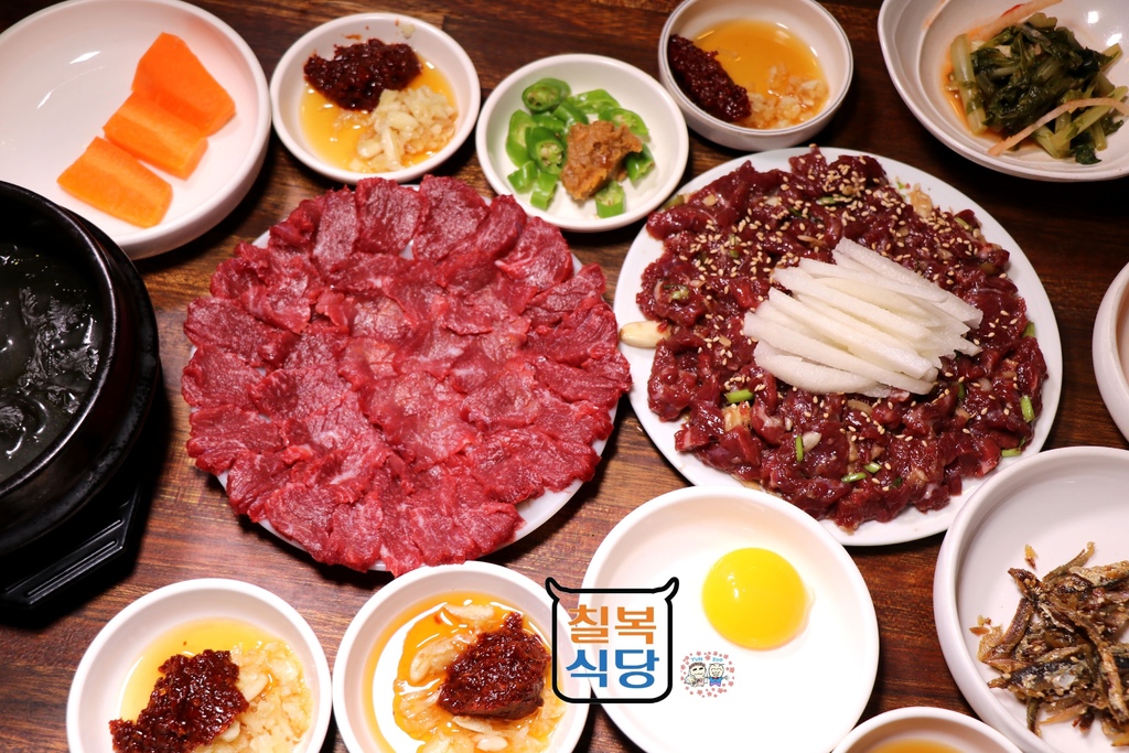 【韓國大邱美食】338壽城池站칠복식당七福餐館大邱十味之生牛肉,美味的韓牛料理只有來韓國才吃得到喔!!