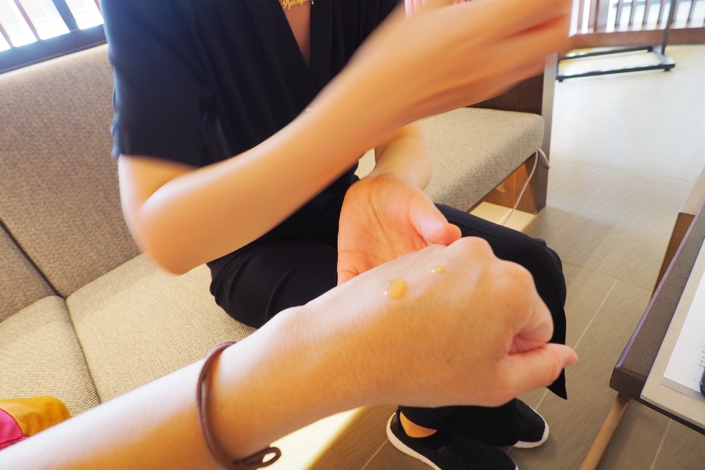 芳療師現場滴了一些在我們手上讓我們感受這潤膚度