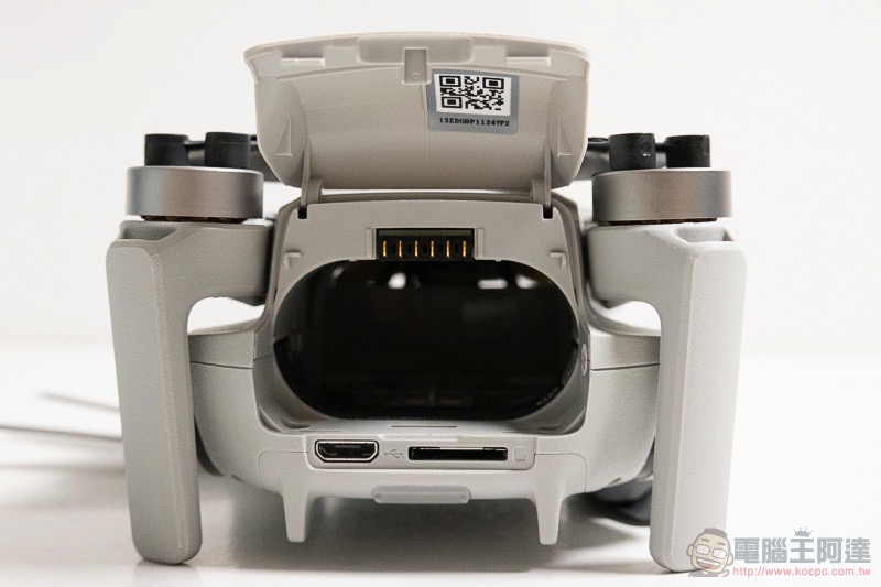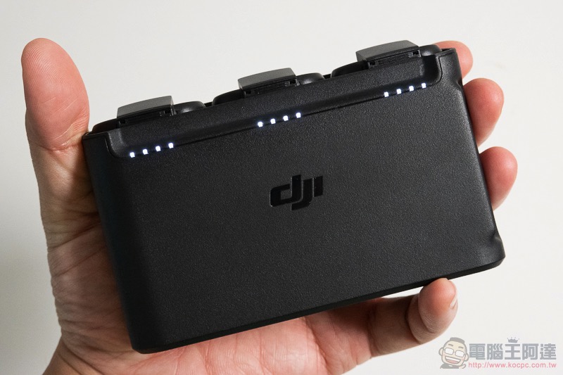 這個充電管家有支援快充,可以透過盒裝中的 USB 充電器進行充電。盒子本身能透過一般的 USB 孔為其他裝置充電(一般是用來應急充遙控的吧,但三顆電池其實也蠻適合拿來當緊急的行動電源使用的 XD)。比較有意思的是,這次的 Mavic Mini 依然是以 microUSB 連接埠為主要介面,並沒有跟上目前普遍的 USB-C 規格: