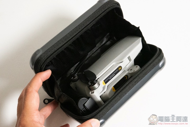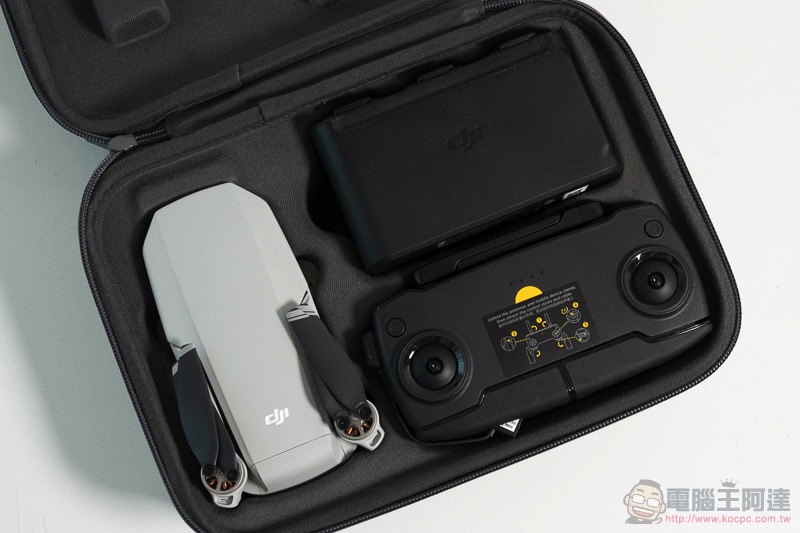 很多人都會說 DJI 是被空拍機耽擱的包包公司,不過這次 Mavic Mini 的套裝裡,居然沒有放進收納包款,實在是有點可惜(但在另售的配件中有,看起來也不賴)。至於原裝附上的,則是有點像是 Mavic Air 的硬殼包 -- 不過相對 MA 主要只提供收納空拍機本體,並且另外附上單肩包的套裝。DJI 這次選擇讓 MM 的使用者可以一次在硬殼包裡收納進,幾乎所有外出飛行時可能用到或備用的螺旋槳等配件。不過這樣一來,就讓 Mavic Mini 的攜帶體積大大增加 -- 最後小編都把這個包放在家(至於我用什麼裝它呢,就請繼續看下去會有解答):