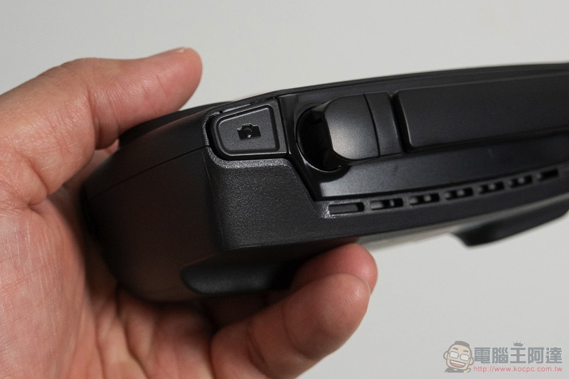 底部的視覺系統,也可以看到檢測電量以及開機的按鈕 -- 開機一樣是經典的短按 > 長按: