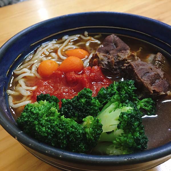 距離成大開車騎車只要五分鐘,現場客人大多是穿拖鞋來買的,可見都是在地人在吃的啊!乖乖碎蕃茄系列是店家必吃招牌,湯頭有豐富蕃茄精華,牛肉大塊又多,還有小蘿蔔跟花椰菜,營養超均衡!
